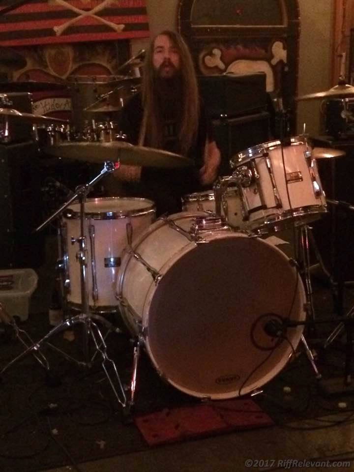 Meanwhile, guitarist/vox Brian Omer was just as well animated himself at times as the guys played a lot of material from their latest album, ‘Blood Moon’. The rhythm section of bassist Kevin Redford and drummer Johnny Wooldridge put on their own juxtaposed show, as well. The former anchored into place, dominating his bass. The latter all over the kit like a man possessed.