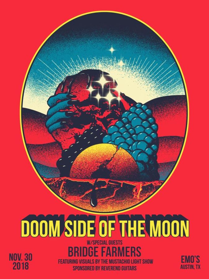 On November 30, Doom Side Of The Moon will again headline Emo’s, followed directly by its first-ever national live shows, including a psychedelic laser show by The Mustachio Light Show. Each date is supported by a local act from that particular city – including Bridge Farmers, Mountain Of Smoke, Chieftain, and Netherlands. The itinerary is as follows: