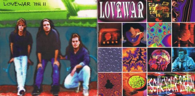 The band flew to Los Angeles to record with the Elefantes at Pakaderm Studios and in 1993, LOVEWAR released their début album, ‘Soak Your Brain‘. The album was a moderate-heavy rock success, as it found favor with many music critics and was widely embraced by fans. LOVEWAR‘s progressive-tempered music was technical and upbeat, melding hints of funk with a jam-oriented styling, comparably similar to acts like Raging Slab, King’s X, Galactic Cowboys, or Animal Bag.