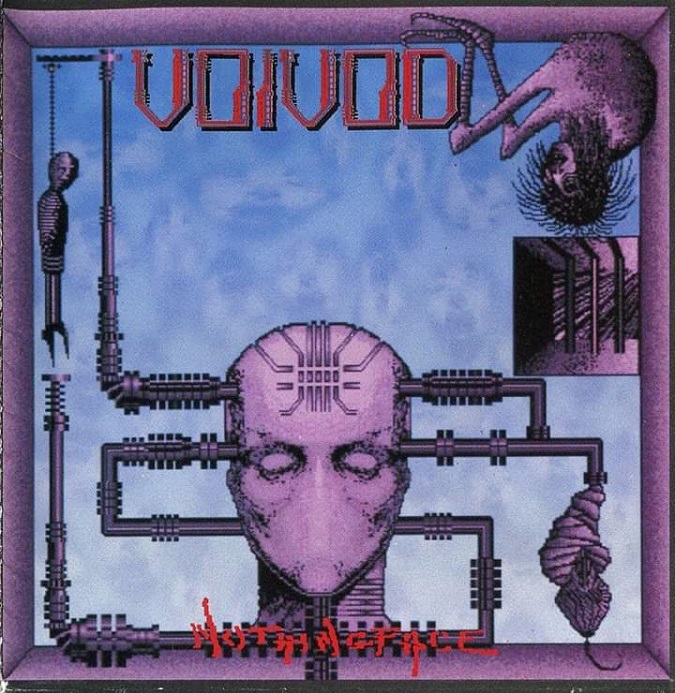 Drummer Away (Michel Langevin) had spent his childhood imbibing horror and sci-fi books and films and the diverse music of bands like Motorhead and Rush, then used it as fuel to create a threatening world of technological nightmares and a bleak future. His intricate, otherworldly artwork has graced every VOIVOD album and is as inseparable from their overall vision as their music.